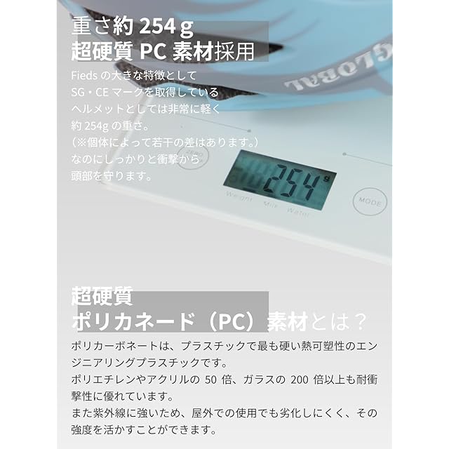 【重さわずか約260g】安全性と丈夫さを実現している 「SGマーク」の認証製品として、重さがわずか260gという軽さ。頭部や首の負担を軽減しながらもしっかりと保護します。
