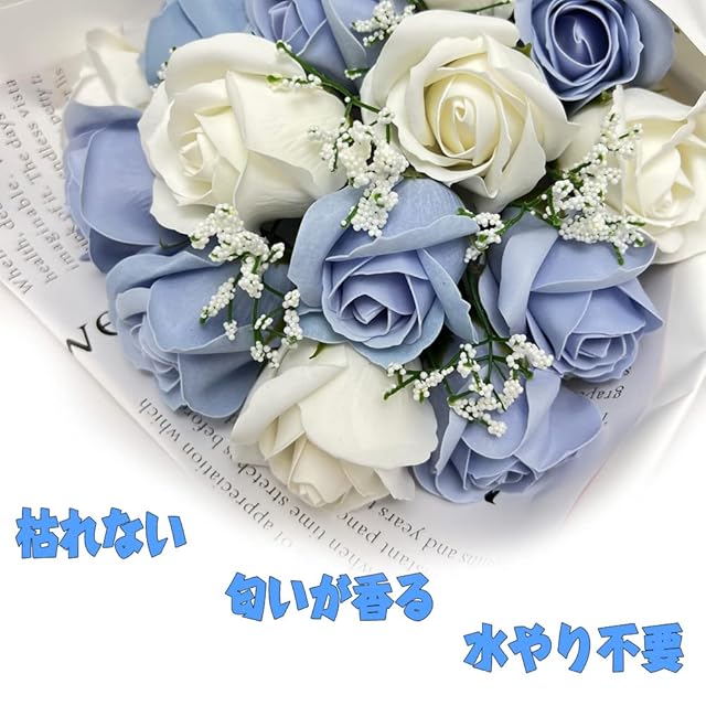 Kiranic ソープフラワー 誕生日プレゼント 母の日 花束 女性 人気ギフト 造花ブーケ 感謝 ブルー+ホワイ バレンタインデー 枯れない花 還暦 石鹸花 記念日 開店祝い 結婚祝い お見舞い ギフトボックス付き メッセージカード付き