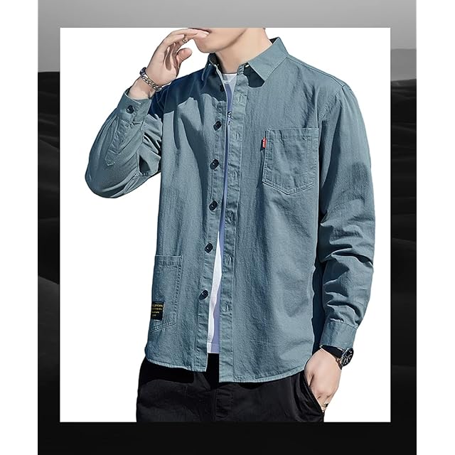 【高品質の綿生地】高品質の綿生地、快適で通気性に優れ、肌に優しい、男性の魅力の落ち着いた面を示す。吸水速乾性、通気性に優れている、柔らかい肌さわりを与えてくれる。程よい厚みの生地は季節を問わず活躍してくれ、休日のカジュアルスタイルや、ビジネスにもハマる万能シャツ。シャツと無地シャツなのでトレンドのワイドパンツやスラックス、ジーンズ、チノパンなどと合わせると綺麗にまとまります。