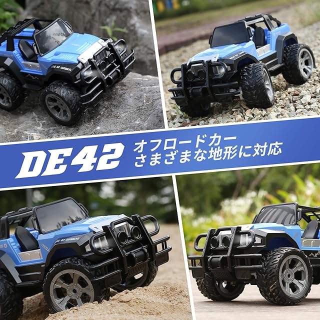 DEERC ラジコンカー こども向け オフロード ジープ 充電式バッテリー RCカー 1/18 操作時間80分 2.4GHz リモコンカー 子供向け おもちゃ クリスマス プレゼント 子供 男の子 小学生 中学生 贈り物 DE42