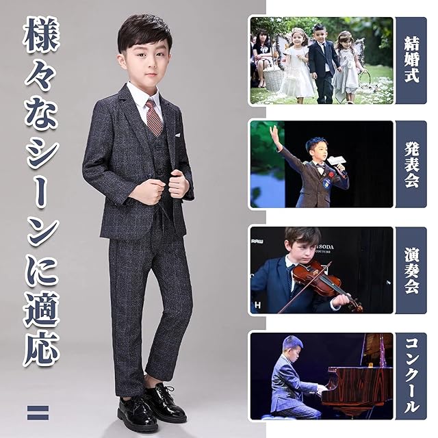 [WEEN CHARM] 男の子 フォーマルスーツ 子供 スーツ ボーイズ チエック柄 キッズ 千鳥柄 4点セット 発表会 七五三 結婚式 かっこいい 入学式 卒業式 90~150