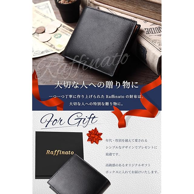 [ラッフィナート] 財布 メンズ 二つ折り 本革 小銭入れ レザー カード4枚 (ブラック×ブラック)