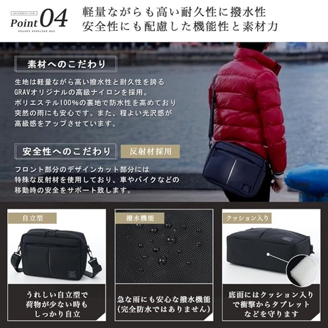 [GRAV] 【15のポケットで収納力UP 】 【 軽量 大容量 コンパクト ショルダーバッグ メンズ レディース|小さめ 軽量 大容量|斜め掛け|防水 撥水|機能的なワンショルダー|タウンユースからアウトドアまで