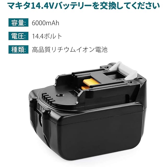 商品の仕様:型番:マキタBL1460バッテリー互換 電圧:14.4V 容量:6.0Ah(6000mAh) ワット数:86.4W 種類:リチウムイオン電池