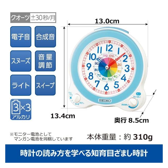 セイコークロック 目覚まし時計 置き時計 知育 アナログ 薄青 134×130×85mm BC420L