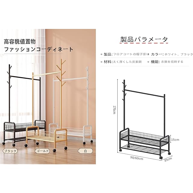 【うまく設計された】洋服ラック の脚部には頑丈なボールタイプのキャスター使用しています,パイプハンガーラックは高品質の金属管を使用した高強度なパイプで、防錆性や耐摩耗性にも優れています。 子供服からワンピースやロングコートまで、176 cmの高さは、任意の長さの服を引っ掛けるのに適しています。