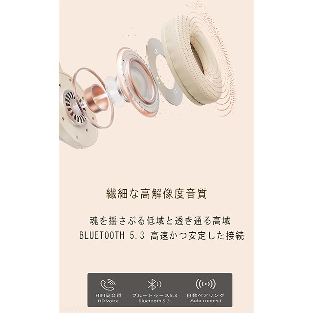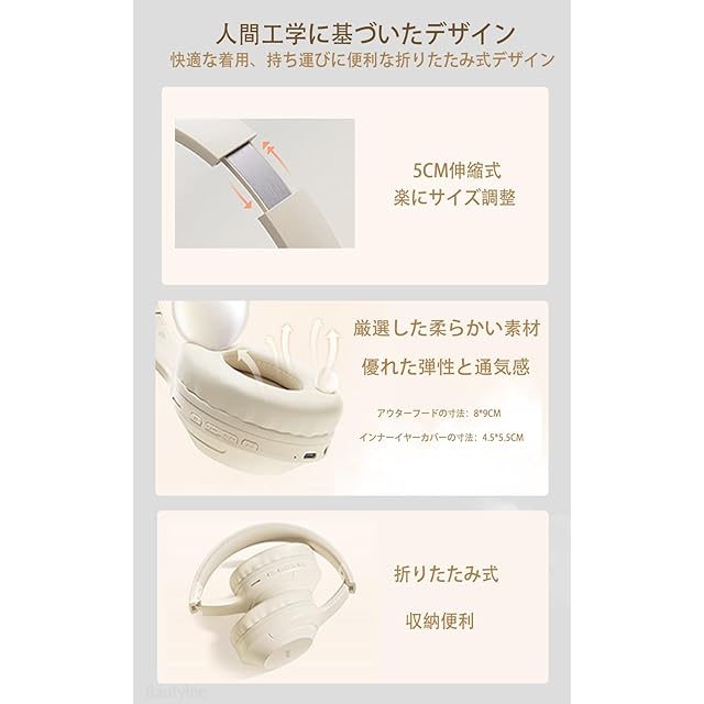 Bautylee ワイヤレスヘッドホン Bluetooth 5.3 オーバーイヤーヘッドホン/HiFi ステレオ重低音/遅延なし/密閉型/軽量/折り畳み可能/内蔵マイク付き/無線 3.5mm AUX有線両用/最大46時間連続再生/日本語取扱説明書付属(アイボリー)