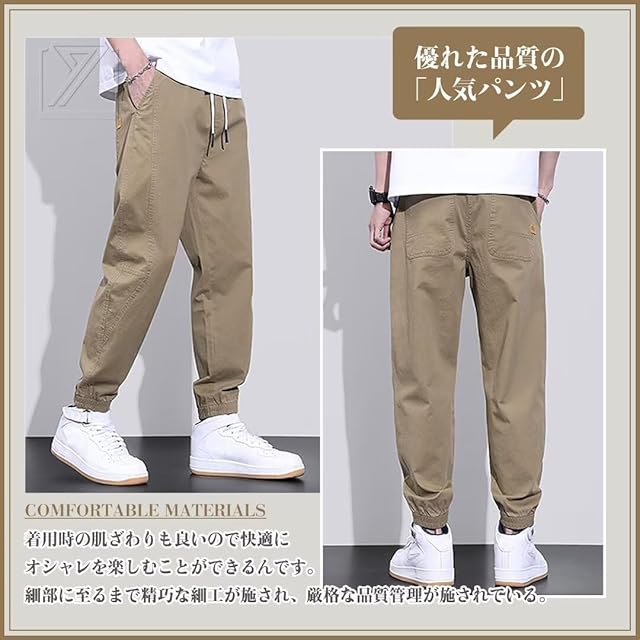 [Kayiyasu] チノパン メンズ ズボン パンツ ワークパンツ 大きいサイズ 裾リブ M~3XL ウエストゴム リラックス ボトムス 綿 黒 調整紐 アンクル丈 9分丈 ゆったり ずぼん かっこいい 無地 人気(L カーキ)
