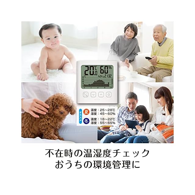 タニタ 温湿度計 グラフ付で温度と湿度の変化がわかりやすい 時計/カレンダー機能付 デジタル 温度計 湿度計 室温計ホワイト TT-580 WH
