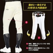 【特徴】特殊形状のマチをが初動の機敏性とより大きな踏み出しがよりスムーズに進化。構えの姿勢に完全フィットさせた3D形状・瞬時の1歩目の動きをスムーズにさせた内股設計により投、捕、打、走 野球の基本姿勢から最大のパフォーマンスを発揮。65mmのシリコンゴム付きマーベルトが腰のホールドを高める。
