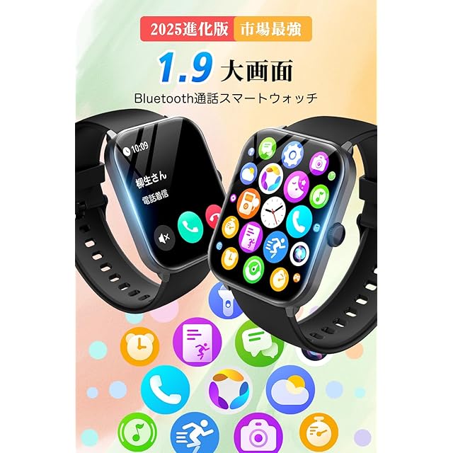 【2025最先端の通話機能・進化した音楽再生機能】スマートウォッチで電話かける/受けることができます。業界最先端のブルートゥース5.4 と搭載し、低消費エネルギーチップにより スマートウォッチをスピーディーな転送速度で通信範囲が広めに。接続の安定性も大幅に向上されました。さらに、前のスマートウォッチより進化した音楽再生機能:スマホで音楽が再生している時に、スマートウォッチより音楽が流れるか流れないか設定できます。(市販のスマートウォッチは設定できません。)