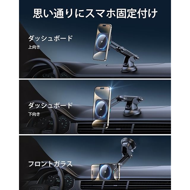 ESR Qi2 15W充電 magsafe 車載 スマホホルダー Qi2認定magsafe充電器 ダッシュボード/風防ガラス磁気ワイヤレス車載充電器 スマホスタンド 車用 マグセーフ充電器 急速充電 iPhone16/15/14/13/12シリーズ&S25対応 ブラック