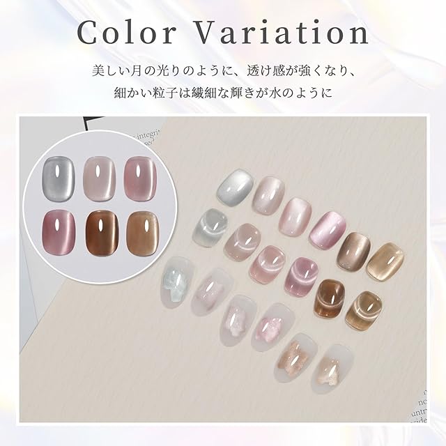 Coikaze マグネットネイル ジェルネイル マグネットジェル キャッツアイジェル セルフネイル カラージェル 猫目 ギャラクシー ネイル ジェル 磁石付き UV/LED対応 6色セット ジェルネイルキット(超繊細月光マグネットジェル)