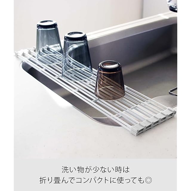 山崎実業(Yamazaki) 折り畳み水切りラック L ホワイト 約W26×D58×H0.8cm タワー tower キッチン スリムに丸めて収納 7835