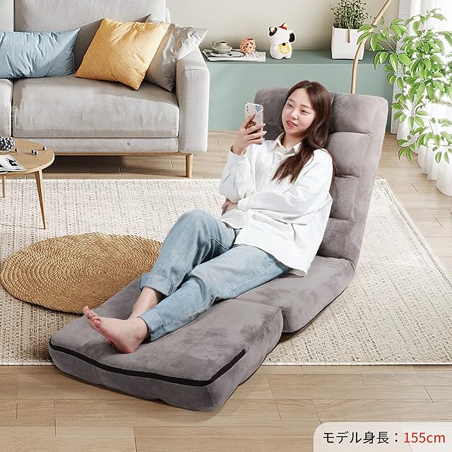 WLIVE 座椅子 ふあふあ 座椅子ソファー 42段階リクライニング フロアチェア カバー外し不可 グレー