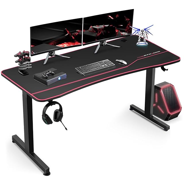 【ゲームプレイの環境を彩る】プロゲーマー向けに設計。机の天板はモニターアーム取り付け可能で、作業スペースをより有効利用できる。リアルな臨場感をプラスします。