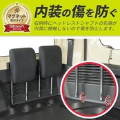 マグネットでヘッドレストをホールドするので、収納時にヘッドレストシャフトの先端が内装に接触せず傷を防止します。