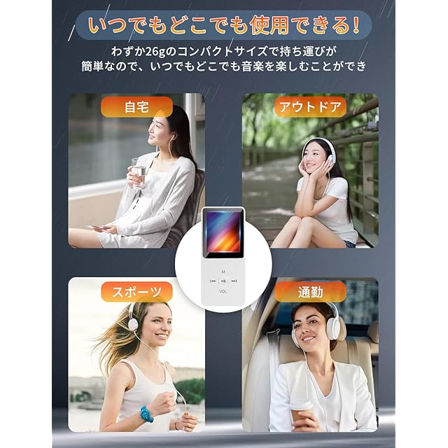 【最新のBluetooth5.1技術&HIFIロスレスサウンド】本MP3プレーヤーは、業界をリードするBluetooth 5.1技術を採用し、より高速な伝送、より安定な接続、より強力な抗干渉能力と優れた互換性を提供しています。また、インテリジェントなデジタルノイズ低減技術と強力な抗干渉能力を備えた高品質のインテリジェントサウンドチップを採用し、効果的にノイズを低減し、使用者の聴覚を保護し、リアルなサウンド効果を復元しています。ヘッドホン、イヤホンとスピーカーなど音声出力機器を繋がって使用できます。(注:Bluetoothヘッドフォンまたはスピーカーとのみペアリング可能。携帯電話、自動車、コンピューターとはペアリングできない。)