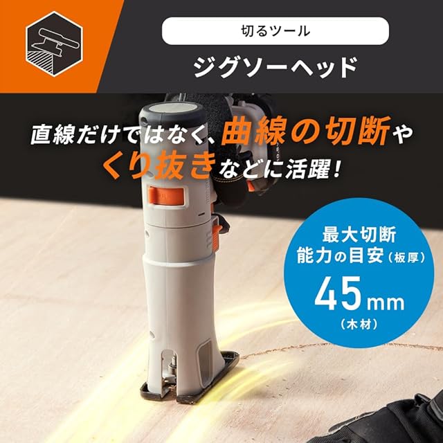 直線+曲線の切断に!ジグソーヘッド10.8V