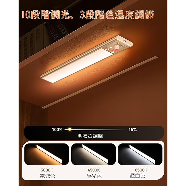 ✅【3色温度・10段階調光・USB-Type―C充電】◆じんかんせんさー ライトは126LEDs電球を内蔵し、アクリル導光板により均一発光します。◆「明るさ調整ボタン」は10%から100%まで10段階の輝度の明るさ調整できます。3000Kから6000Kまでの範囲で、昼光色、昼白色、電球色の3つの色温度をお選びいただけます。6000K—読書や仕事、4500K—普通の室内照明、3000K—寝室/トイレ/足元などの場合に適用します。メモリー機能を搭載し、お好みの明るさが記憶されるので、使うたびに調光し直す必要がありません。