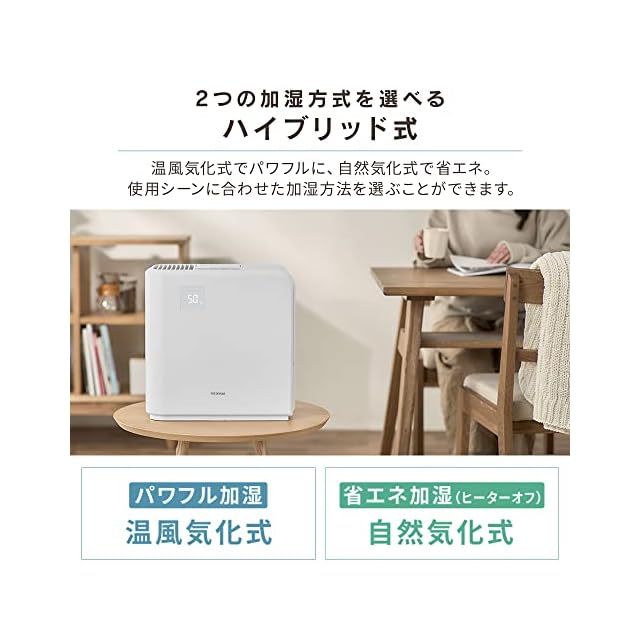アイリスオーヤマ 加湿器 大容量 スチーム式(加熱式) 気化式 ハイブリット式 加湿量 500ml タンク容量 5L 14畳 10時間連続加湿 卓上 デスク用 加湿表示あり HVH-500R1-W ホワイト