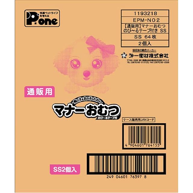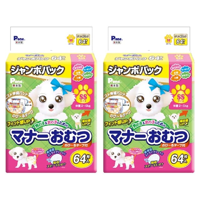 P.one 通販用 男の子&女の子のためのマナーおむつ のび~るテープ付き ペット用 SSサイズ64枚入×2個 (ケース販売)