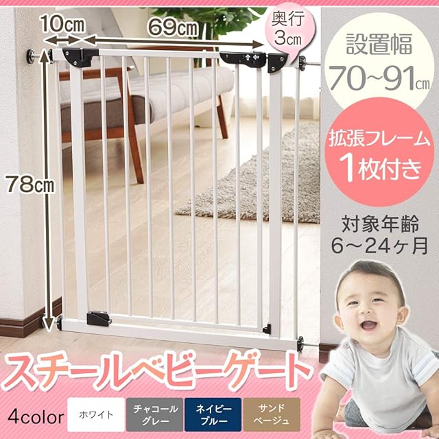 アイリスプラザ ベビーゲート 高さ78㎝ 取付幅70-91㎝ 拡張可能 安心安全ダブルロック機能 突っ張りタイプ ベージュ 70-91cm [自動開閉]