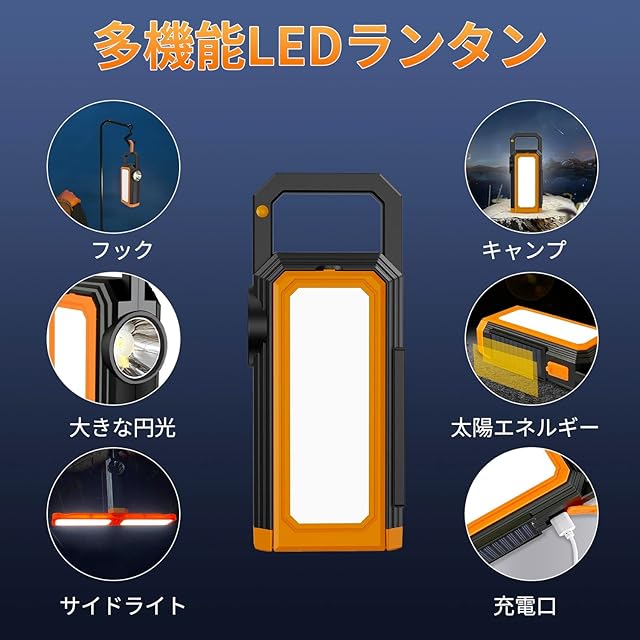 【防水性・耐用性抜群】ソーラー ランタンは防水機能を備え、いかなる角度からの水しぶきも耐えられ、小雨、雪などの天気でも影響なく使えます。キャンプ、夜釣りや災害時などの様々な場合で夜間照明として役立ちます。また、特殊のABS素材で耐衝撃性、耐熱性、耐磨耗性に優れ、悪天候に耐えられ ランタン です。ご注意:完全防水ではないので、水面下に投入しないでください。