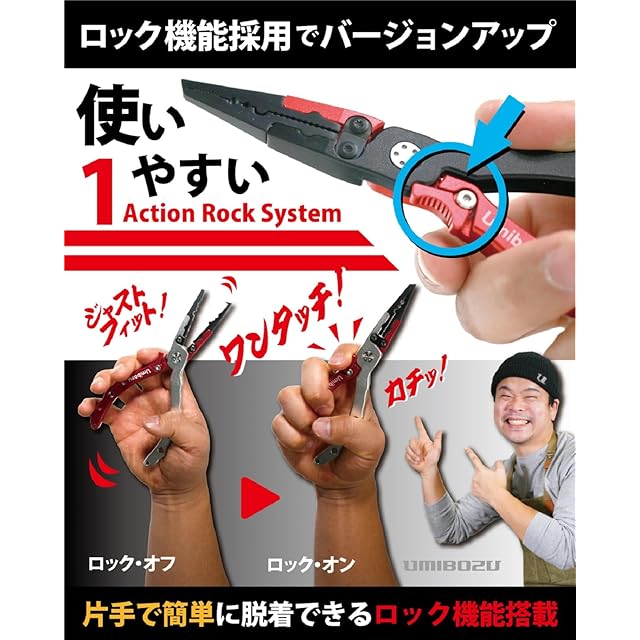 Umibozu(ウミボウズ) フィッシングプライヤー 釣り ペンチ 針外し 防錆 ラインカッター 軽量 カラビナロープ付き (1.レッド&ブラック)