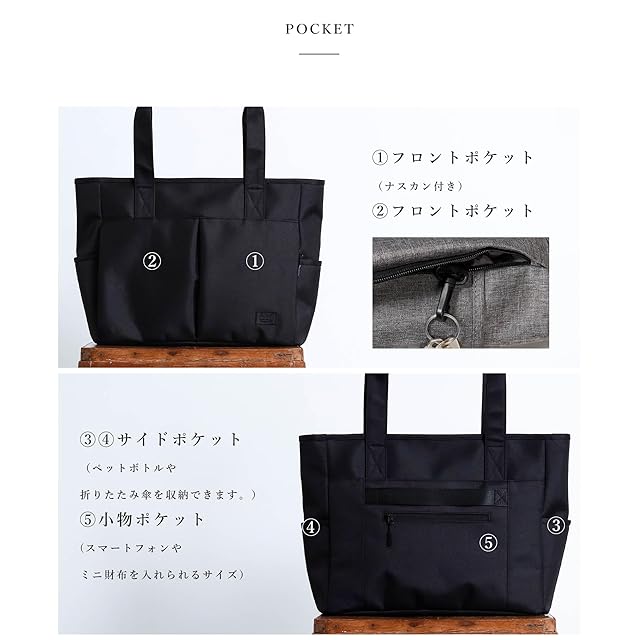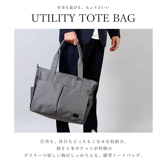 仕事も、休日もどっちもこなせる収納力。軽さと多ポケットが特徴の、デイリー で欲しい物がしっかり入る、 横長 トートバッグ 。