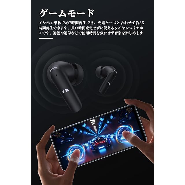 低遅延モード・最大35時間再生:本ブルートゥースイヤホンはゲームプレイに最適な「ゲームモード」を搭載します。左右イヤホンどちらも四回タップしたら「ゲームモード」をオンにします。快適にゲームを楽しめることが可能です。TW018 ワイヤレスイヤホンは一回のフル充電でイヤホン本体が最大7時間再生可能で、充電ケースを入れて約四回の充電できるので最大35時間再生可能です。(※再生可能時間は音量、再生する内容、使用環境によって異なります)通勤通学・仕事・出張時などシーンでバッテリー切れを気にせず使えます。