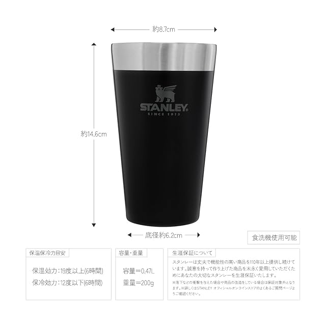 STANLEY(スタンレー) スタッキング真空パイント 0.47L マットブラック 真空断熱タンブラー ステンレス コーヒー 保温保冷 ビール アウトドア スポーツ観戦 食洗機対応 保証 (日本正規品)
