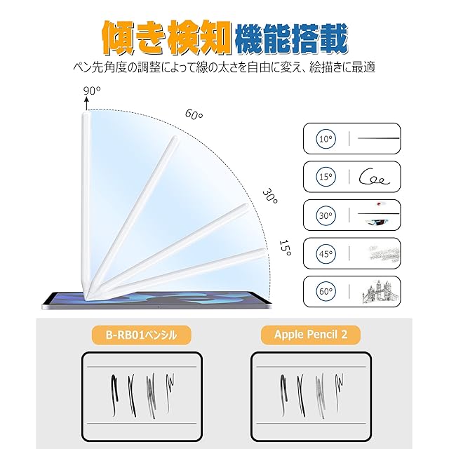 【誤作動防止・傾き検知機能】パームリジェクション機能が搭載されているCiscleスタイラスペンを使用すると、手は画面に触れても誤作動にならなく、長時間の作業でも腕が疲れません。傾きを検知できることより、線の太さを自由に変え、絵描きに最適です。5分以上使わないとタッチペンは自動的にスリープモードに切り替え、バッテリーの節約に役立ちます。また、iPadのロック画面からメモを起動・スクリーンショットを撮る、スクリブル機能、図形補正などのアップルペンシルが持つ機能にもサポートしています。
