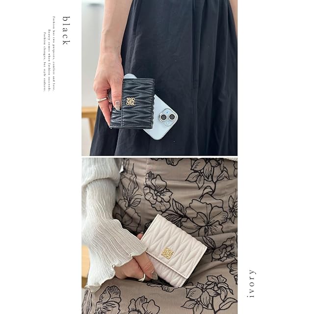 [ジゼル] 財布 三つ折り財布 ミニ財布 コンパクト 使いやすい L字型 BOX型 カードケース 小銭入れ 大容量 ロゴ入り レディース 折りたたみ財布 ギフト プレゼント キルティング 小さい (ブラック)