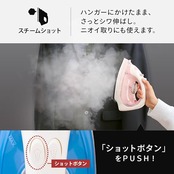 【スチーム2段階】布の厚みに合わせてスチーム量を調整できます。段階切り替えは、レバーで簡単に調節できます。【霧吹き+ドライアイロン】霧吹き機能がついているので、Yシャツやブラウスなどのシワをきれいに伸ばします。本体についている霧吹きボタンを押すと操作できます。【スチームショット】ハンガーにかけたまま、シワ伸ばしでき、ニオイ取りにもご利用いただけます。本体についているショットボタンを押すと操作できます。