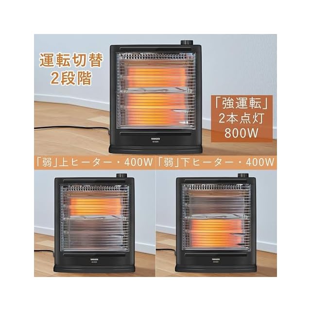 【運転切替】2段階切替でお好みの暖かさが選択できます。上下どちらか付けたり(400W)、両方付けたり(800W)とその日の気温やお好みに合わせて調整してください。