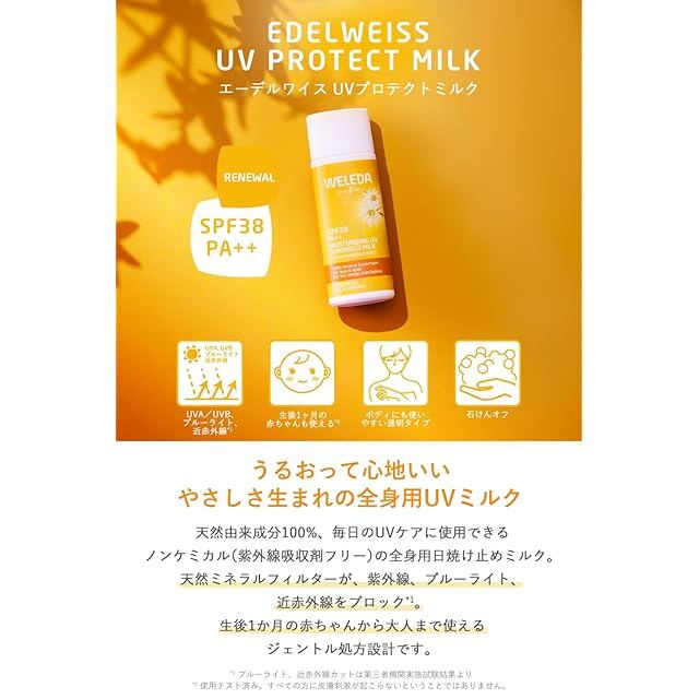 【公式】WELEDA(ヴェレダ) エーデルワイス UVプロテクトミルク 50mL SPF38 PA++ 日焼け止め 全身用 無着色 ノンケミカル 赤ちゃん 敏感肌 スキンケア 天然由来成分 オーガニック
