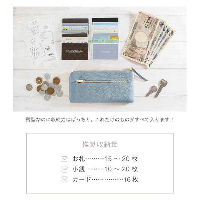 【かわいい×スリム】毎日使うものだから、かわいさにも機能にもこだわりたい。そんな方におすすめのL字ファスナー長財布です。柔らかく温かみのあるマットな本革を使用し、どの角度から見ても上品なたたずまい。厚みはわずか15mm。小さめカバンにもすっきり収まります。