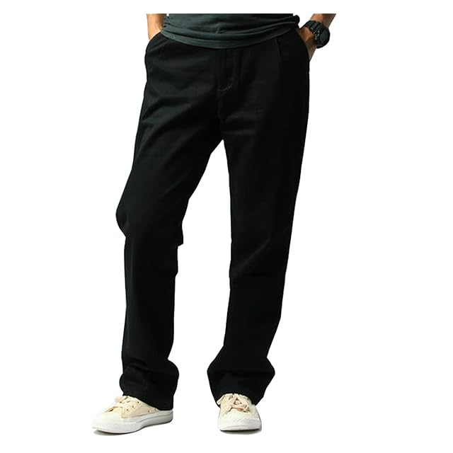 [Nalador] チノパン メンズ ストレッチ 大きいサイズ ロングパンツ ゆったり ボトムス カラーパンツ 無地 コットン イージーパンツ 快適… (3XL, ブラック)