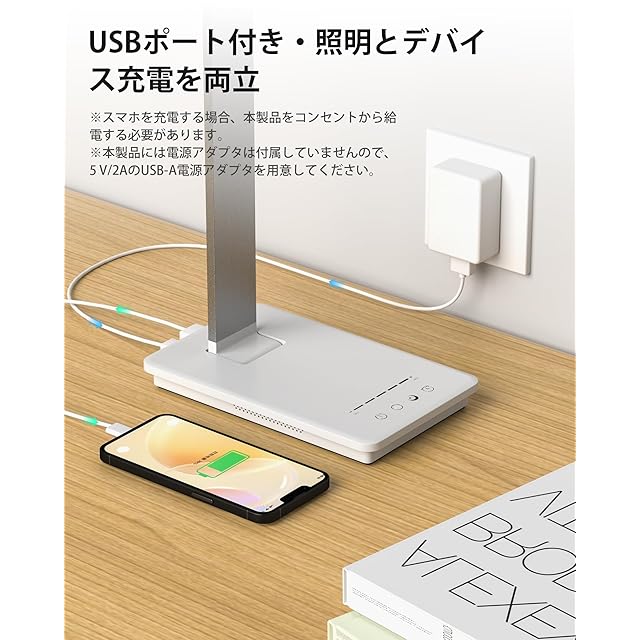 【省エネ設計と多様な給電方法】高効率なLED技術により、消費電力を大幅に抑え、電気代の節約にも貢献します。使用寿命も長く、長期的に見てコストパフォーマンスに優れた選択です。USB給電にも対応しており、PCやモバイルバッテリーから手軽に電源を供給できます。さらに、ライトの背面にはUSBポートがあり、読書中にスマートフォンを充電することも可能です。