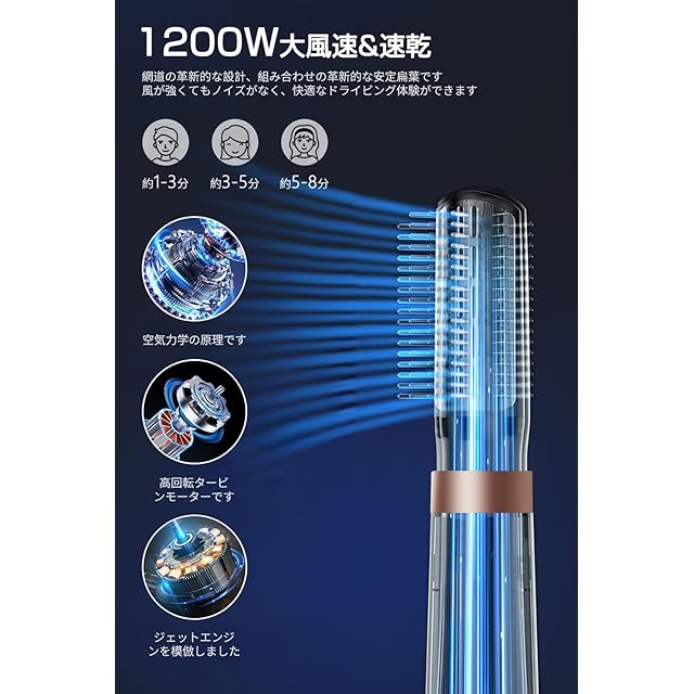 VORAGA ドライヤー 大風量 電気髪ごて 速乾 ヘアドライヤー 1200W カールドライヤー 簡単にスタイリング 3段階冷熱風量調節 くるくるドライヤー マイナスイオン 付属品5種 過熱防止機能 熱風ブラシ 恒温ヘアケア ストレート/カーリーヘア/ボリュームアップ 家庭用/ヘアサロン/出張 おしゃれ バラ金