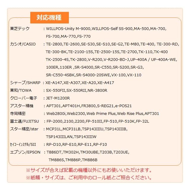 ロールの直径80mm カシオ TRP-5880-TWに対応する汎用感熱レジロール。 東芝テック製 58R-80TR-ZC、シャープ RL-130T等の代替としてもご使用可能。「ワンタッチ投げ込み方式」のレジスタにご使用ください。