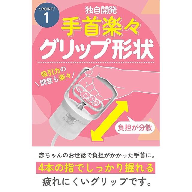 ✅【独自開発のグリップ形状】私たちの子供用鼻水吸引器は独自開発のグリップ形状によって握力に負担がなく、安定して握ることができます。また、デリケートな赤ちゃんの鼻水吸引に対して、吸引力の調整もしやすいので、鼻水吸引器による赤ちゃんへの負担がありません。更に手動なので、赤ちゃんが怖がる電動音もなく、眠りを妨げません。
