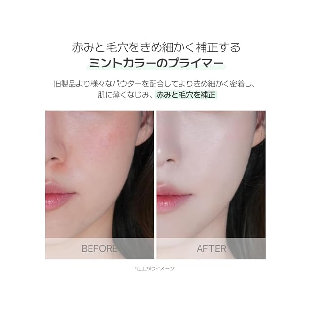 【01 ミント】赤みと毛穴をきめ細かく補正するミントカラーのプライマー。旧製品より様々なパウダーを配合してよりきめ細かく密着し、 肌に薄くなじみ、赤みと毛穴を補正