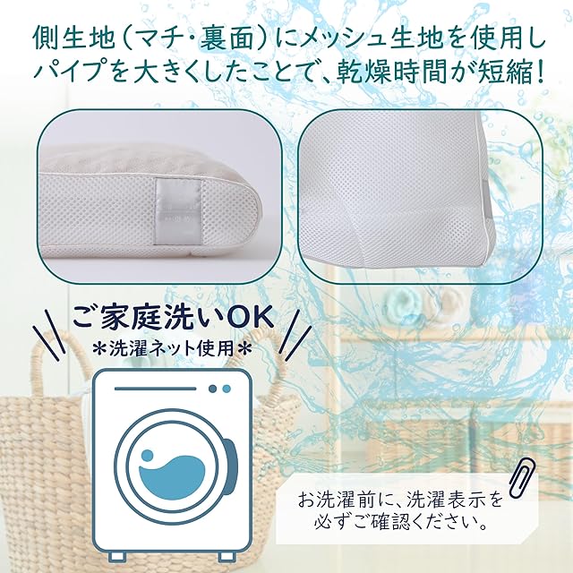 通気性・弾力性のよいソフトパイプはこれまでのものに比べてサイズを少しアップ。マチ・裏地に通気性の良いメッシュ生地を使うことで、お洗濯のあとの乾燥時間が短縮! いつも気持ちよくお使いいただけます。