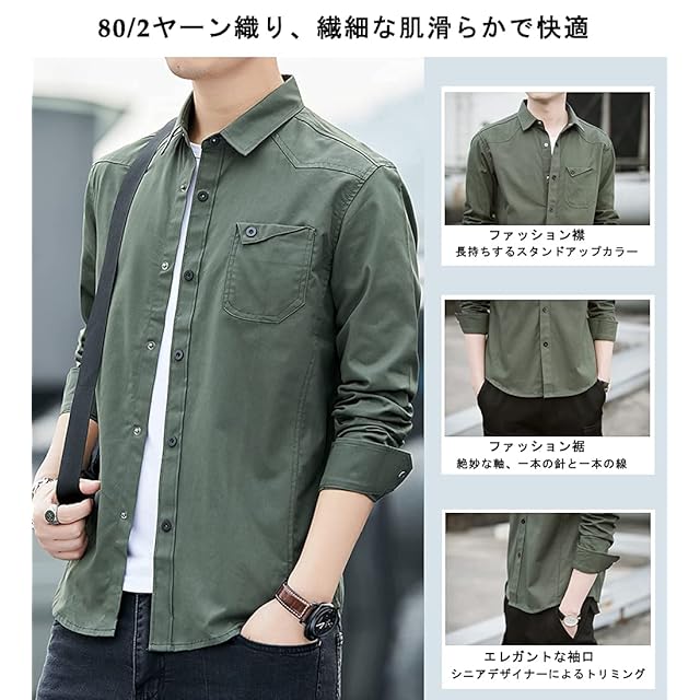 [Amyni] シャツ メンズ レッドステッチ オックスフォードシャツ カジュアル シンプル 長袖 オシャレ 無地 春 秋 冬 ワイシャツ