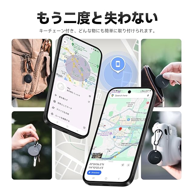 【物の検索】Google“デバイスを探す”アプリを使用して物を追跡します。トラッカーがBluetooth範囲内にある場合、内蔵スピーカーが音で物を特定します。トラッカーがBluetooth範囲外の場合、地図上でタグの現在位置を確認できます。