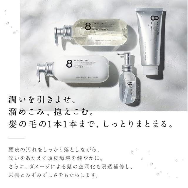 ダメージを受けたパサつきがちな髪に、水分を届けて束縛。乾燥しがちな頭皮も保湿して美髪作りをサポートし、髪がぷるんと潤い毛先までしっとりまとまります。