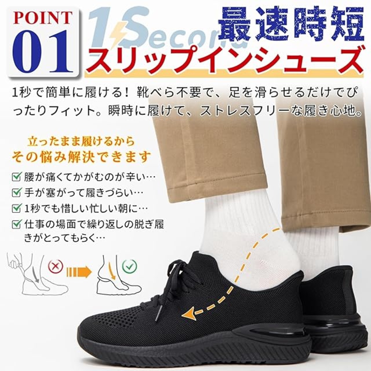 [STRDEOUT] 【立ったまま 履ける スニーカー 】スニーカー 手を使わず履ける メンズ 脱ぎ履きしやすい ランニングシューズ 軽量 運動靴 黒 メッシュ