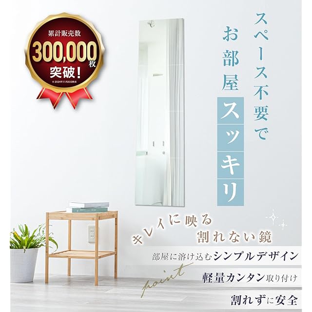 ✅【諦めてませんか?】部屋が狭く、全身鏡を置くスペースが無い…そんな悩みを解決したい一心でBOOMIE「どこでも貼れる割れない鏡」は誕生しました。壁さえあればどこでも設置可能。出かける前に全身をサッとチェックできます。